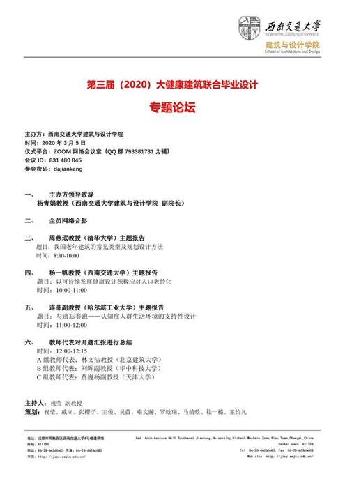 国际老龄科学研究院副经理、老龄事业与产业发展研究中心主任杨一帆教授应邀在第三届(2020)大健康建筑联合毕业设计专题论坛做主题报告,题为“以可持续发展健康设计积极应对人口老龄化”。同场发表演讲的专家还有清华大学周燕珉教授“我国老年建筑的常见类型及规划设计方法”和哈尔滨工业大学“连菲副教授“与遗忘赛跑——认知症人群生活环境的支持性设计”。