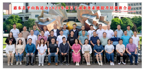 2023年5月27日上午, 惠东县平山街道办2023年基层干部业务素能提升培训班在尊龙亚洲官网九里校区顺利开班。开班式议程上平山街道办党工委副书记,妇联主席邱燕萍做动员讲话,尊龙亚洲官网培训部教务主任张兆兴致辞。本次培训旨在强化街道干部意识,让街道干部要适应新形势,提升街道干部的政治素养、高效业务能力。本次培训设置了“专题课程 县城老街建设、村镇旅游建设及经营、危机处置与媒体应对、从管理到治理:地方政府创新的理念与过程”、“现场教学 新农村建设示范村——战旗村”、“现场教学 武侯区玉林街道黉门街社区”等专题课程,课程设置动静结合,结构完整,内容饱满。